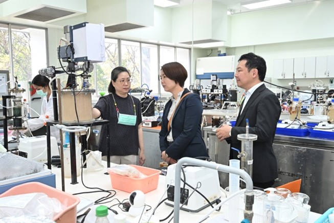 ในวันที่ 9 ธันวาคม คณะจากมหาวิทยาลัยคิวชูได้เข้าเยี่ยมชมห้องปฏิบัติการวิจัย ณ มจธ. วิทยาเขตบางขุนเทียน โดยได้รับการต้อนรับจาก ดร.อรรณพ นพรัตน์ รองอธิการบดี มจธ. บางขุนเทียน, รศ.ดร. จักรกฤษณ์ เตชะอภัยคุณ รองผู้อำนวยการสถาบันฝึกอบรมและพัฒนาโรงงานต้นแบบ (สรบ.) สำหรับห้องปฏิบัติการที่เข้าเยี่ยมชมได้แก่ ห้องปฏิบัติการการใช้ประโยชน์และการจัดการของเสีย (Waste Utilization and Management Laboratory) ภายใต้ศูนย์พันธุวิศวกรรมและเทคโนโลยีชีวภาพแห่งชาติ และ สรบ. มจธ., ศูนย์ความเป็นเลิศด้านเทคโนโลยีเอนไซม์และการใช้ประโยชน์จากจุลินทรีย์ (Center of Excellence in Enzyme Technology and Microbial Utilization) และ ห้องปฏิบัติการแปรรูปเชื้อเพลิงขั้นสูง (Advanced Fuel Processing Laboratory – AFPL)