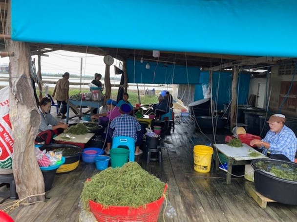 The farmers shared key challenges facing their operations, including the proliferation of unwanted seaweed species and the impact of heavy rainfall, which reduces salinity levels and hampers sea grape growth. Both farms currently employ a sowing method that requires manual harvesting — a process that could potentially be improved by adopting a longline cultivation system, offering a simpler and less labor-intensive approach.