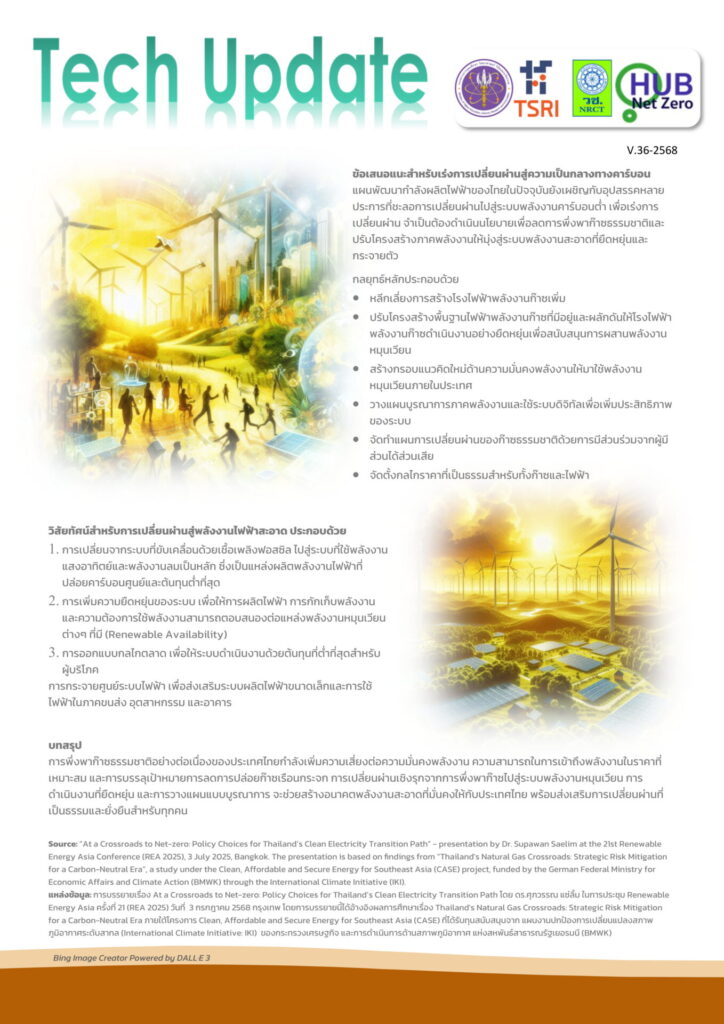 Transitioning from Natural Gas: Pathways Toward a Sustainable and Secure Energy Future for Thailand การเปลี่ยนผ่านจากก๊าซธรรมชาติ: เส้นทางสู่ระบบพลังงานที่ยั่งยืนและมั่นคงให้กับประเทศไทยในอนาคตBy admin / 7 December 2025 Visitors 246 FacebookFacebookXXLINELine